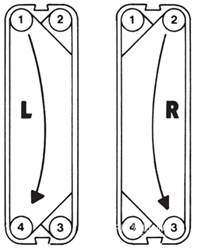 Десни и леви пластини:При десните пластини потокът се движи от вход 2 към вход 3 или обратно от вход 3 към вход 2.